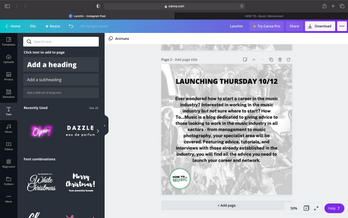 Before promoting any articles, I needed to focus on launching my page. The best way to do this online was to create a post and story about it. I used Canva to do this as it’s a great design website for social media posts - it’s quick & easy to use and comes with thousands of pre-made templates you can use.